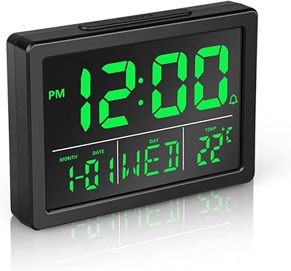 Amazon Co Jp デジタルled時計 目覚まし時計 置き時計 卓上時計 温度表示 カレンダー表示 明るさ調整 調光可能 大画面 アラーム機能 音声制御機能 スヌーズ機能付き 防水 大音量 Usb充電 省エネ 寝室 オフィス 旅行用 プレゼント グリーン ホーム キッチン